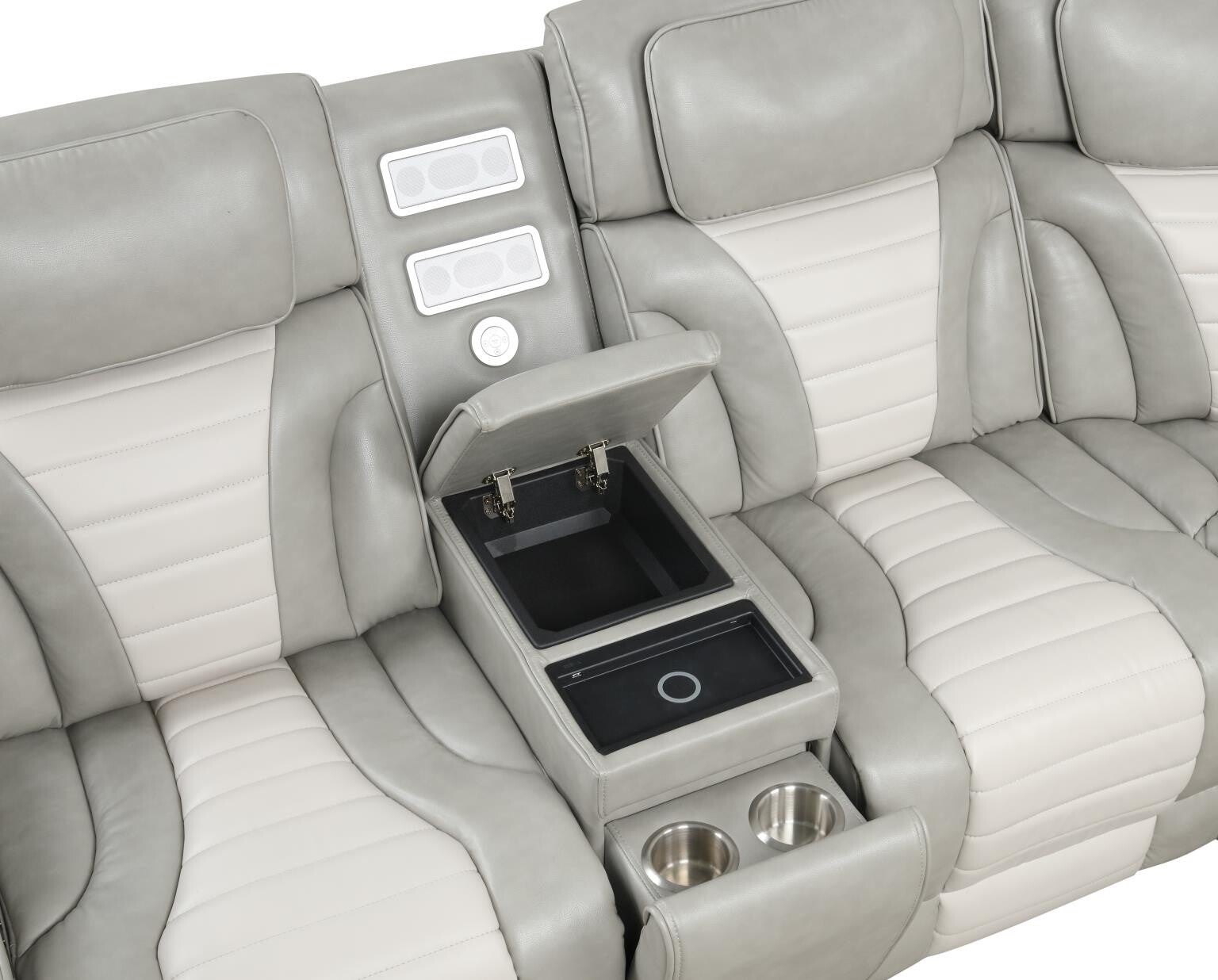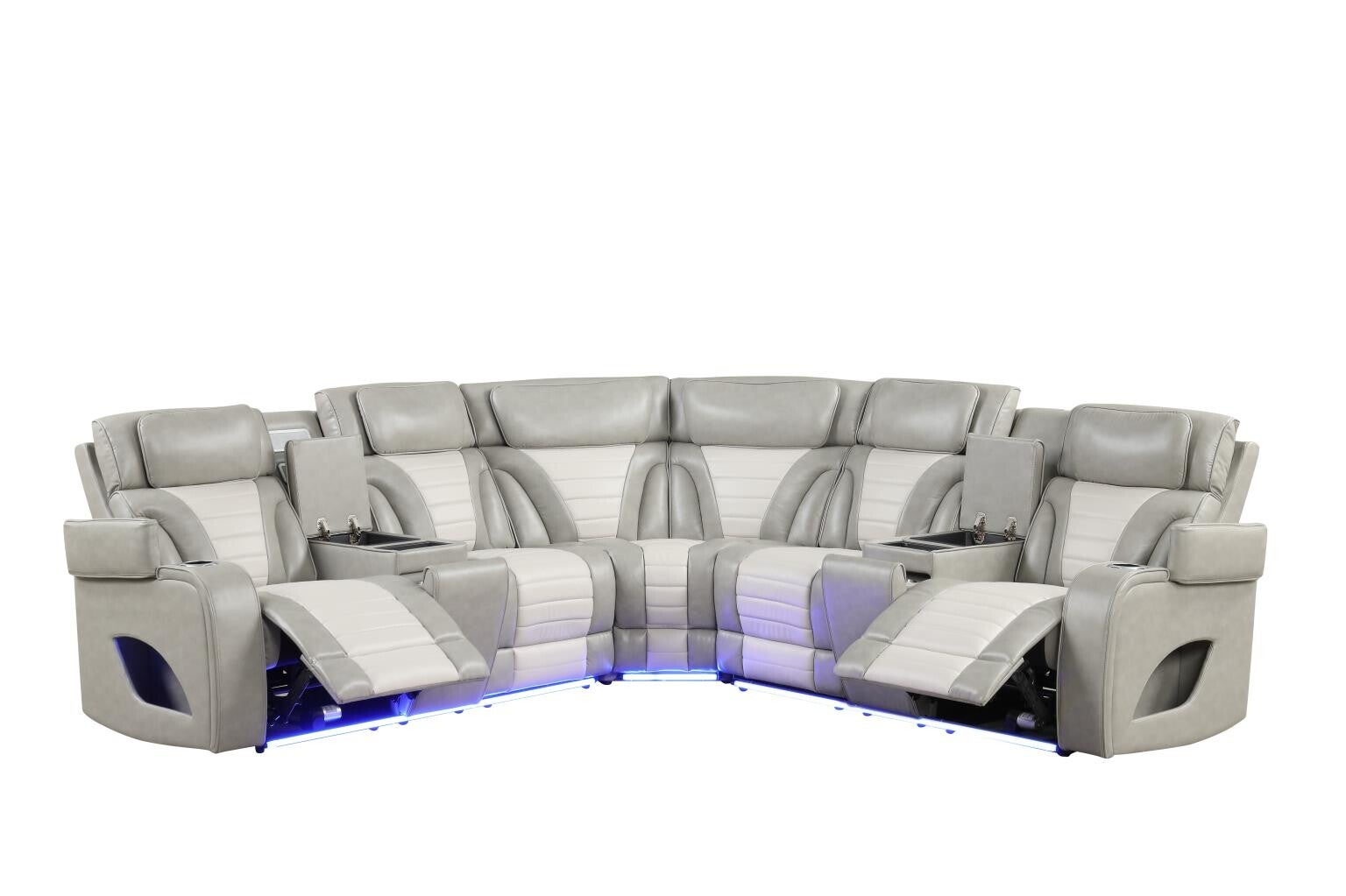 Atlas - Gray & Ice 3PCS Power Recliner Sectional with Power Headrest, Console, Wireless Charging, Speaker, LED. USB Charger, Cup Holder